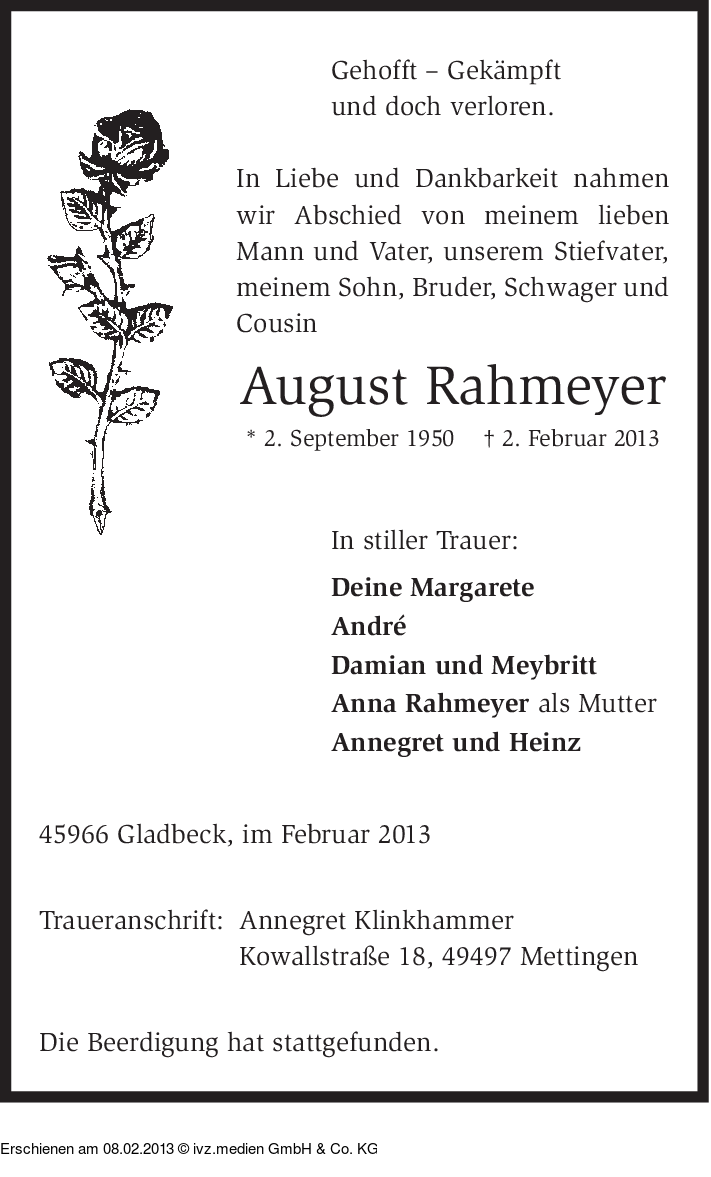 IVZ-Trauer | August Rahmeyer