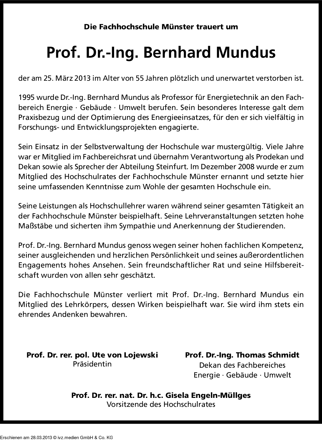 Anzeige vom 28.03.2013