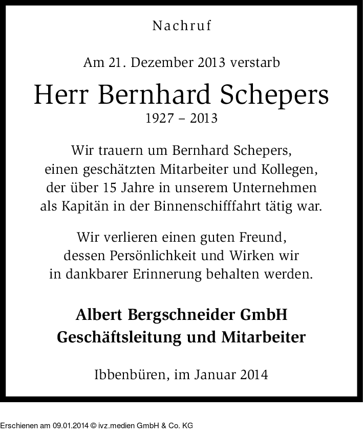 Anzeige vom 09.01.2014