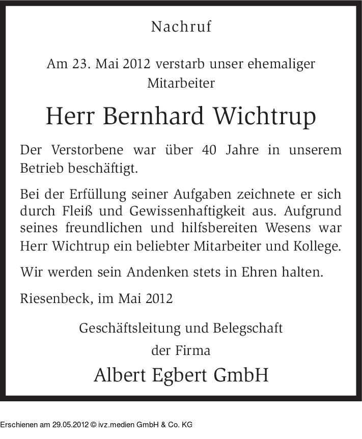 Anzeige vom 29.05.2012