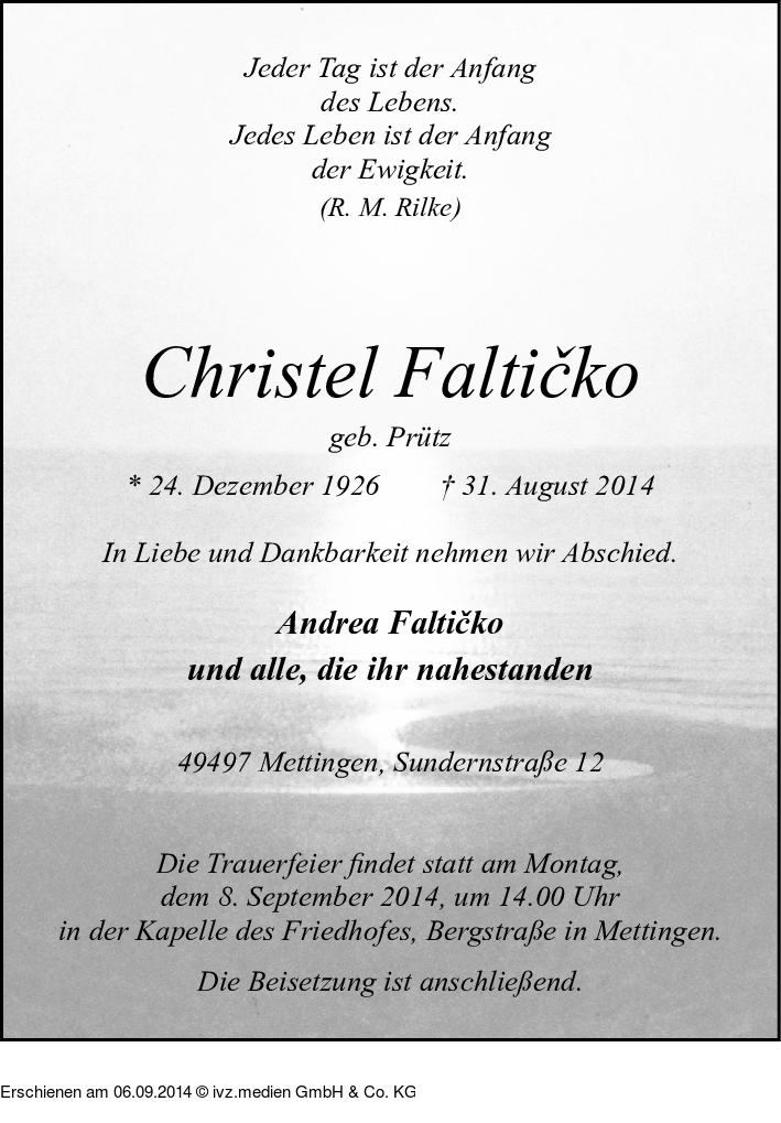 Anzeige vom 06.09.2014