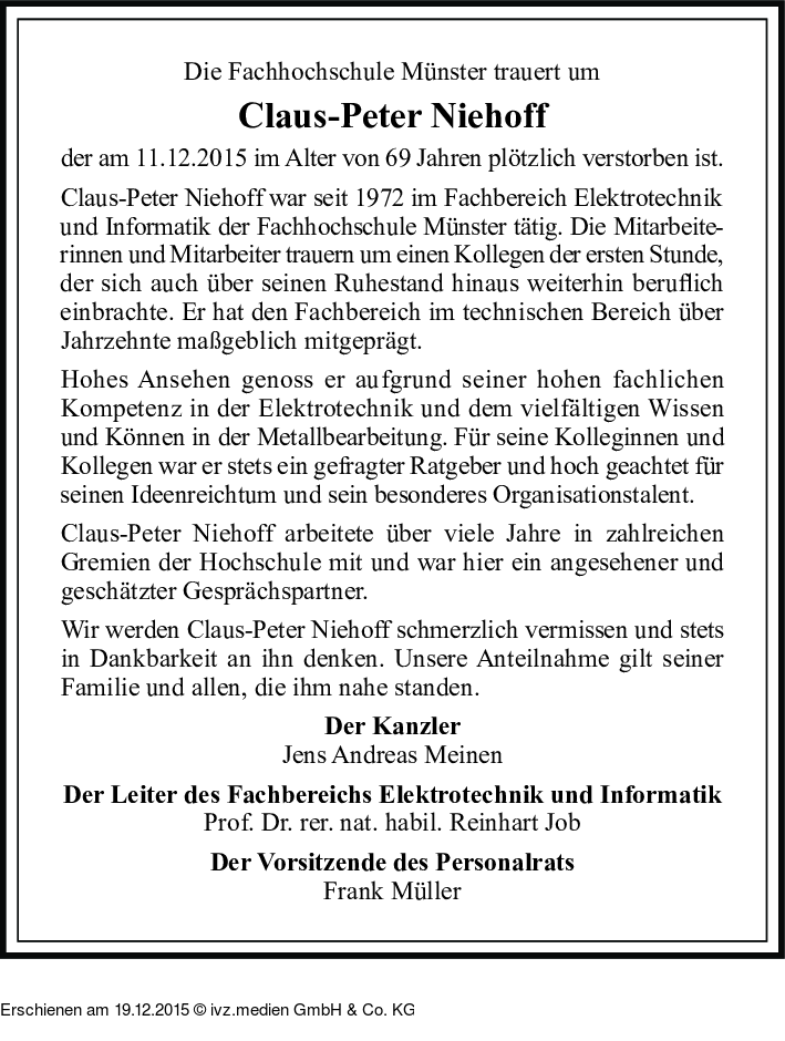 IVZ-Trauer | Claus-Peter Niehoff