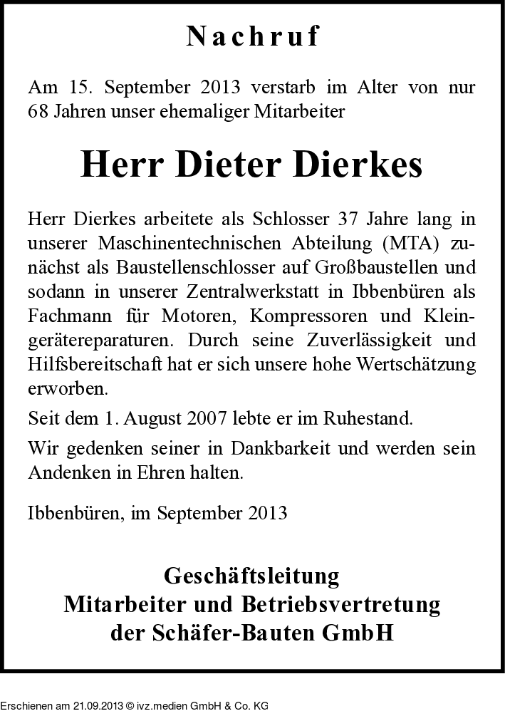 Anzeige vom 21.09.2013