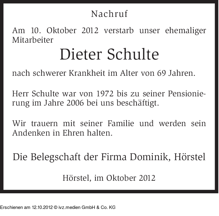 Anzeige vom 12.10.2012