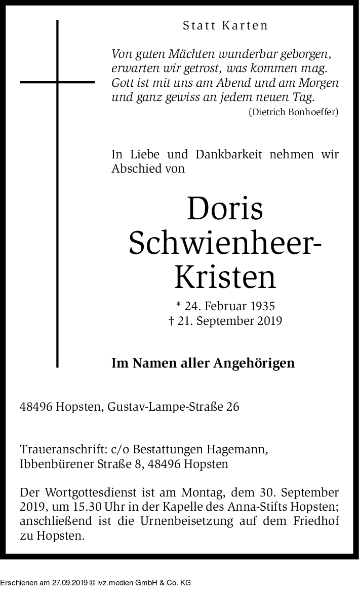IVZ-Trauer | Doris Schwienheer-Kristen