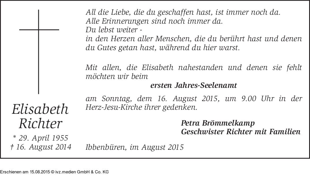 Anzeige vom 15.08.2015
