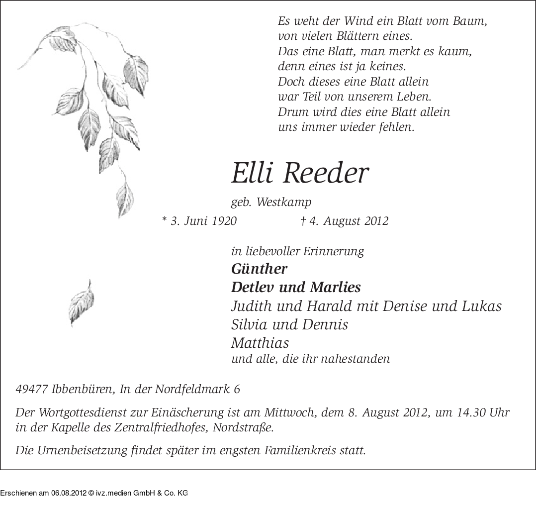 Anzeige vom 06.08.2012