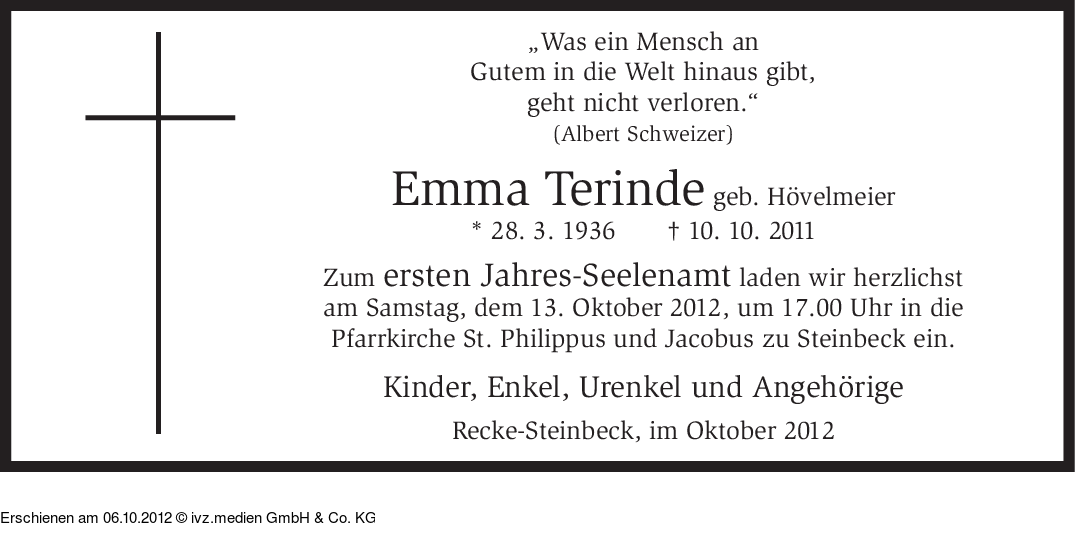 Anzeige vom 06.10.2012