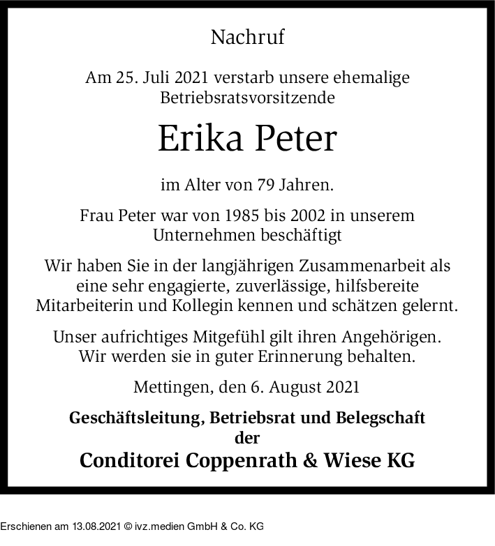 IVZ-Trauer | Erika Peter