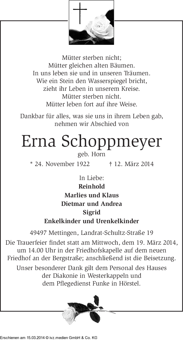 IVZ-Trauer | Erna Schoppmeyer