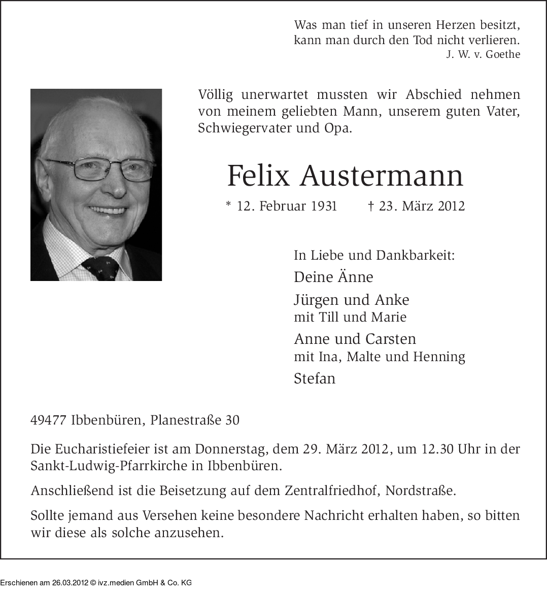 Anzeige vom 26.03.2012