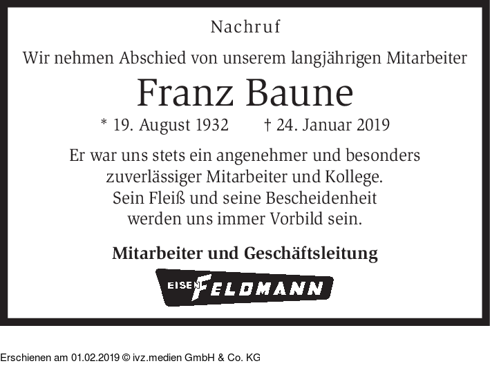 Anzeige vom 01.02.2019