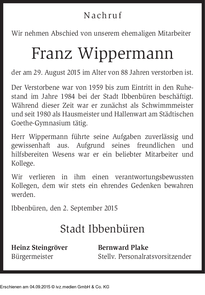 Anzeige vom 04.09.2015