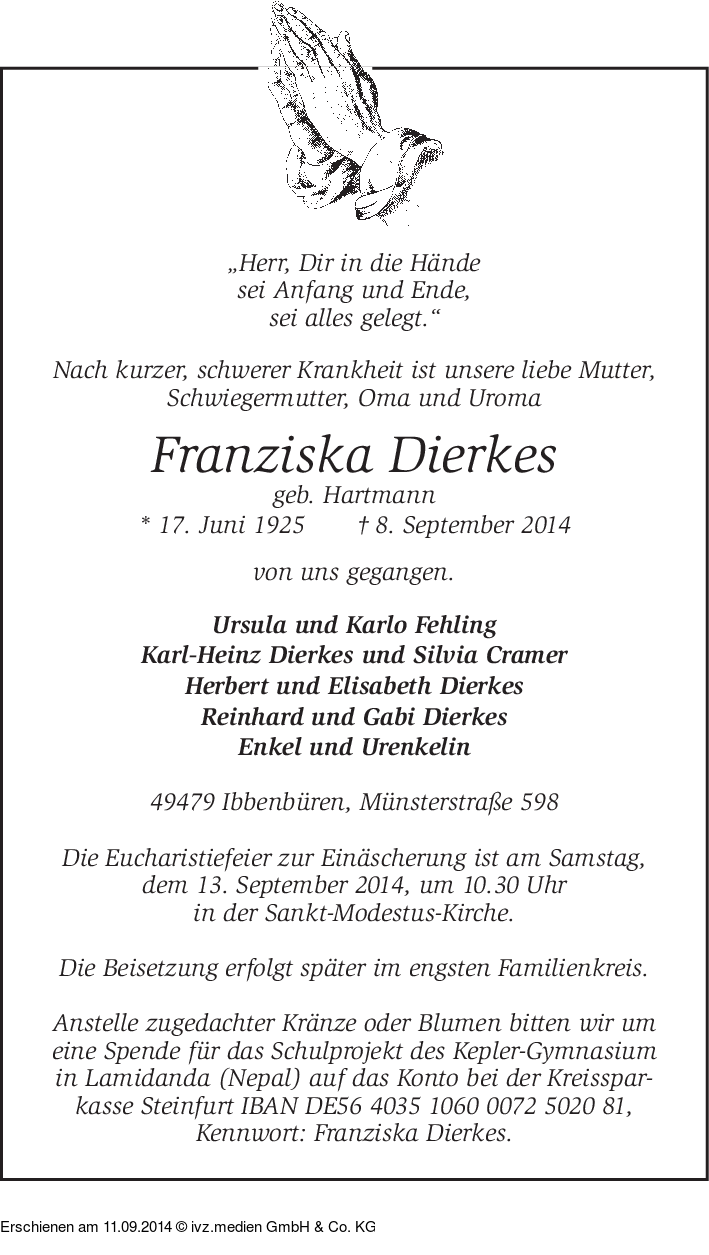 Anzeige vom 11.09.2014