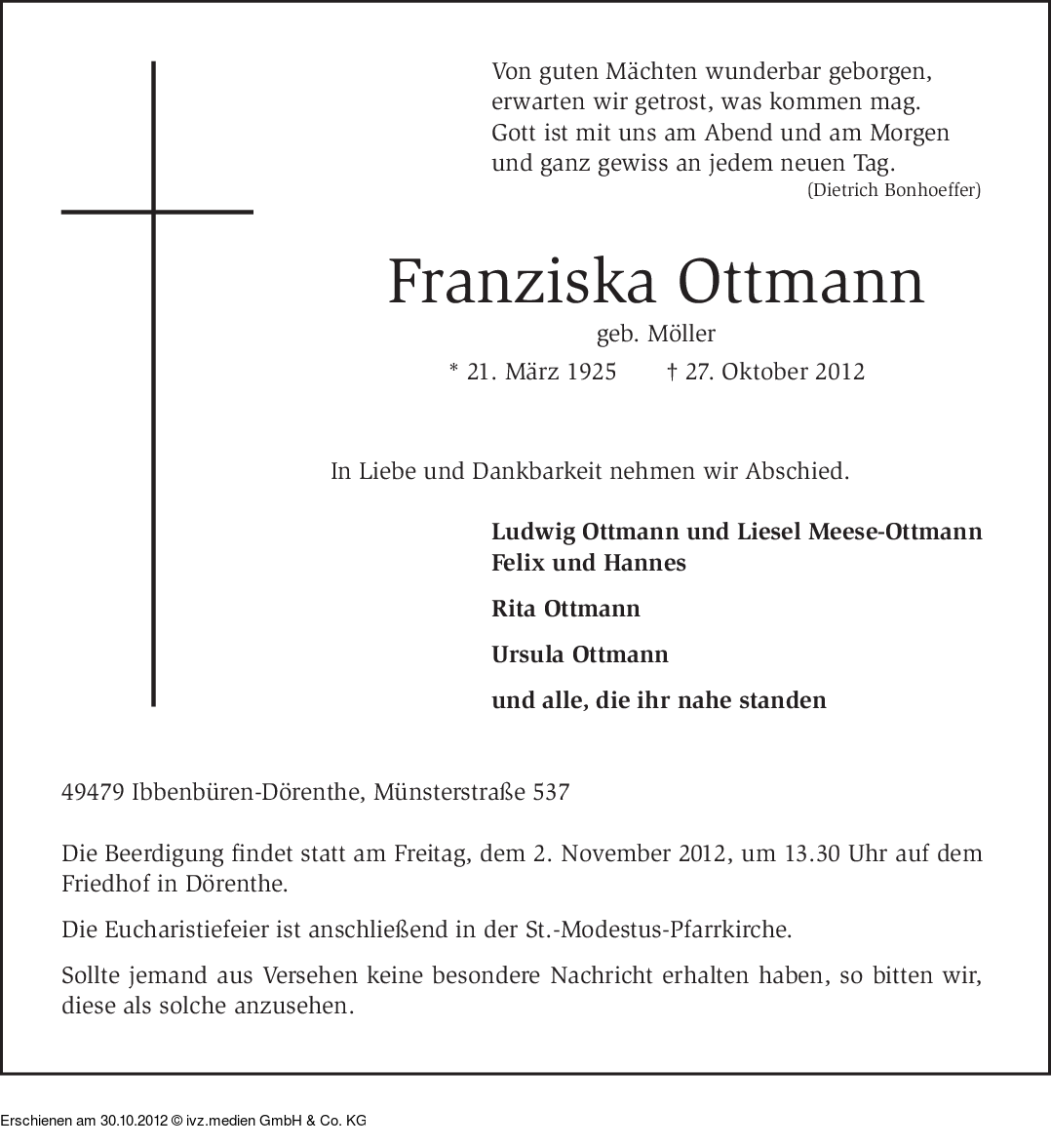Anzeige vom 30.10.2012
