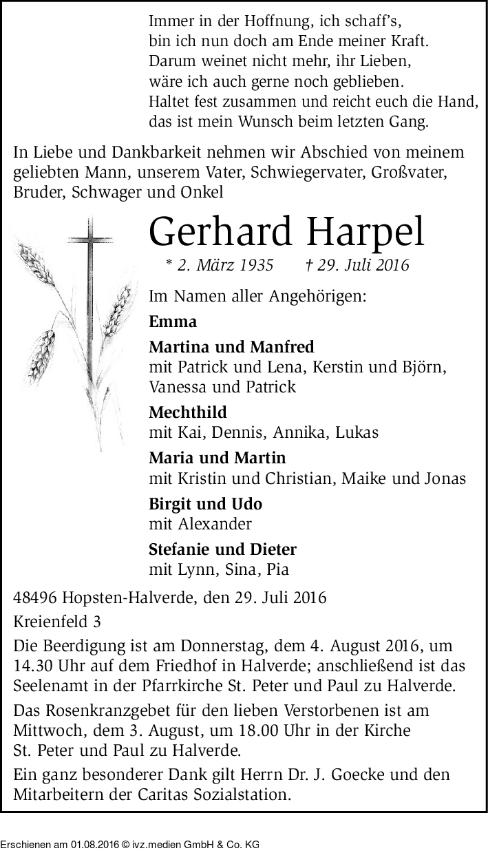 Anzeige vom 01.08.2016