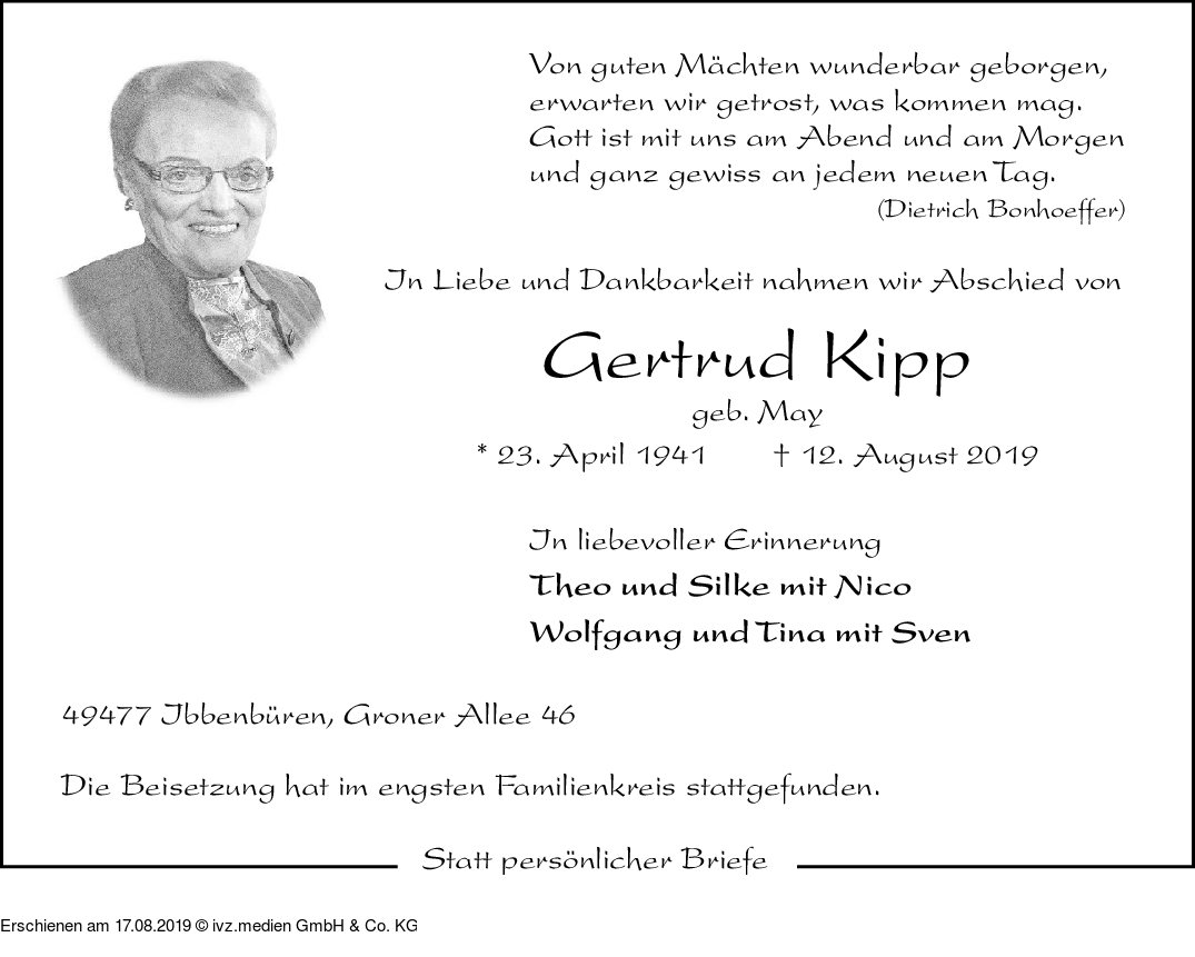 Anzeige vom 17.08.2019