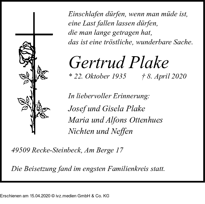 IVZ-Trauer | Gertrud Plake