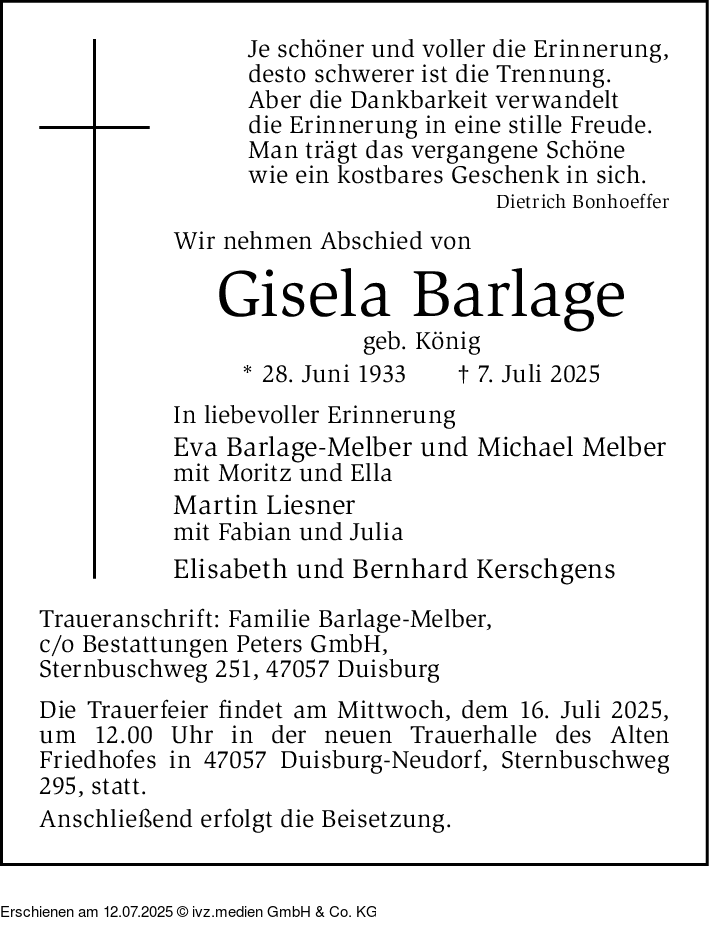 IVZ-Trauer | Gisela Barlage
