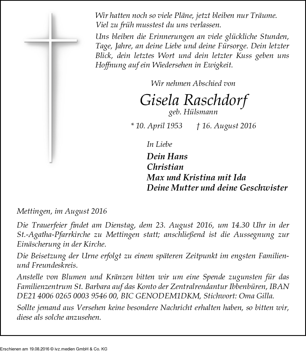 Anzeige vom 19.08.2016
