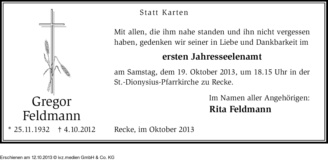 Anzeige vom 12.10.2013