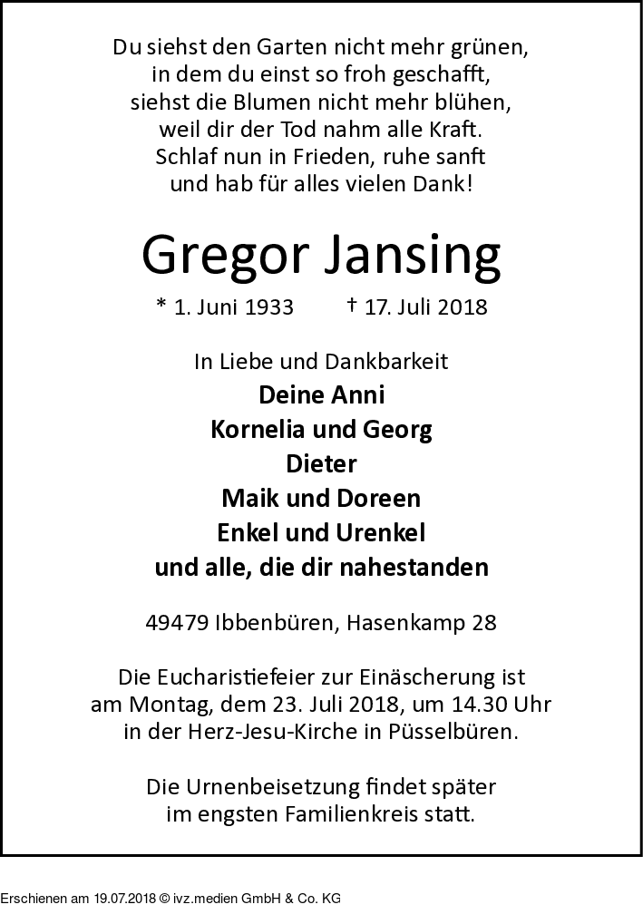 Anzeige vom 19.07.2018
