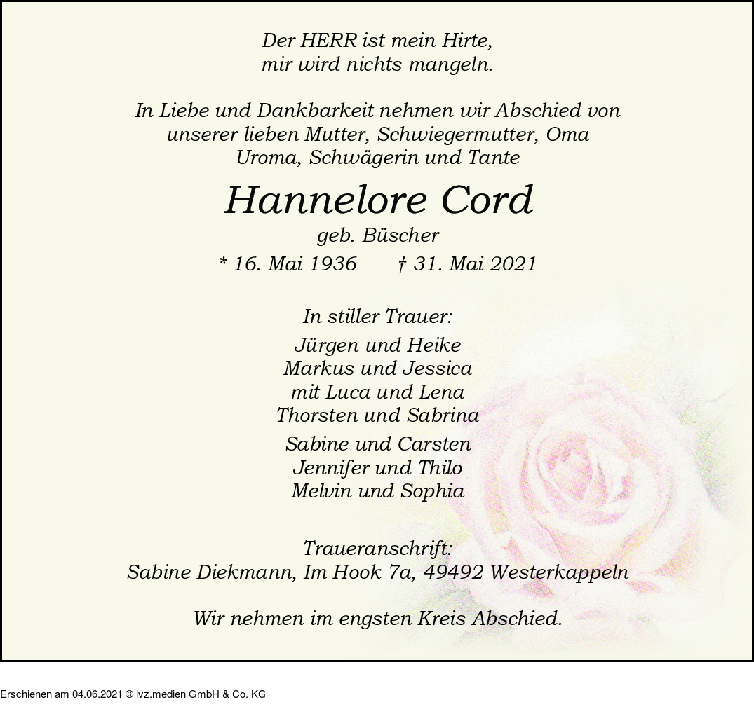 IVZ-Trauer | Hannelore Cord