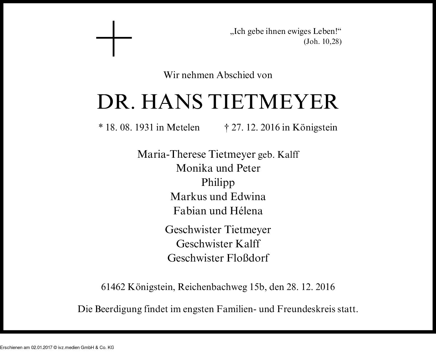 IVZ-Trauer | Hans Tietmeyer