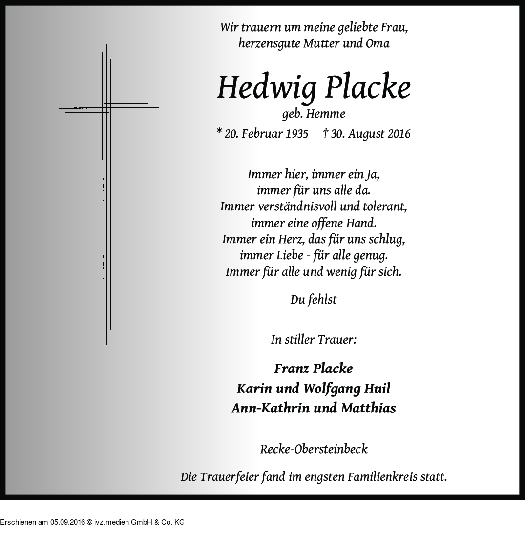 IVZ-Trauer | Hedwig Placke