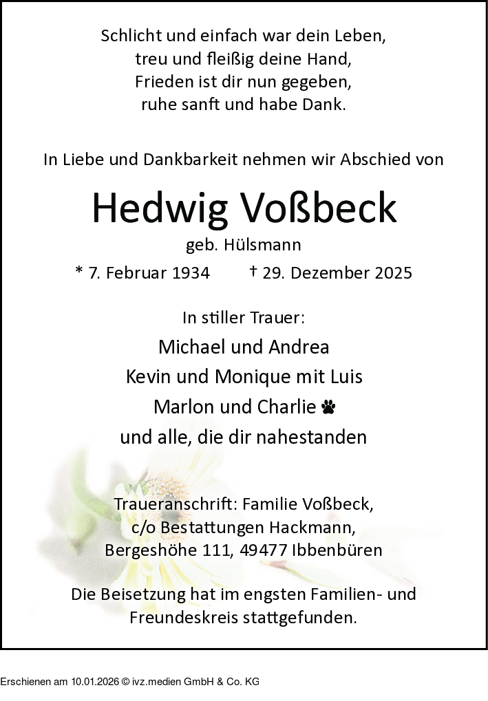 IVZ-Trauer | Hedwig Voßbeck