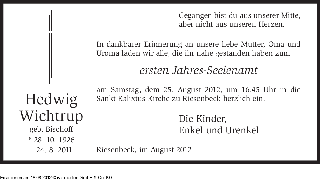 IVZ-Trauer | Hedwig Wichtrup