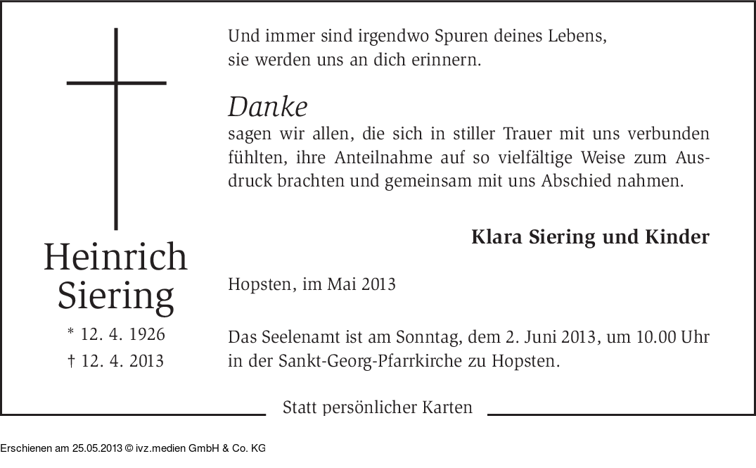 Anzeige vom 25.05.2013