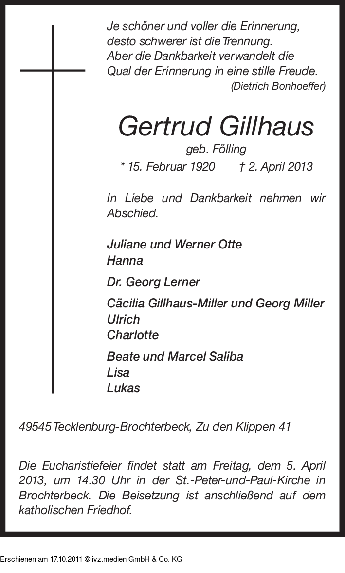 Anzeige vom 17.10.2011