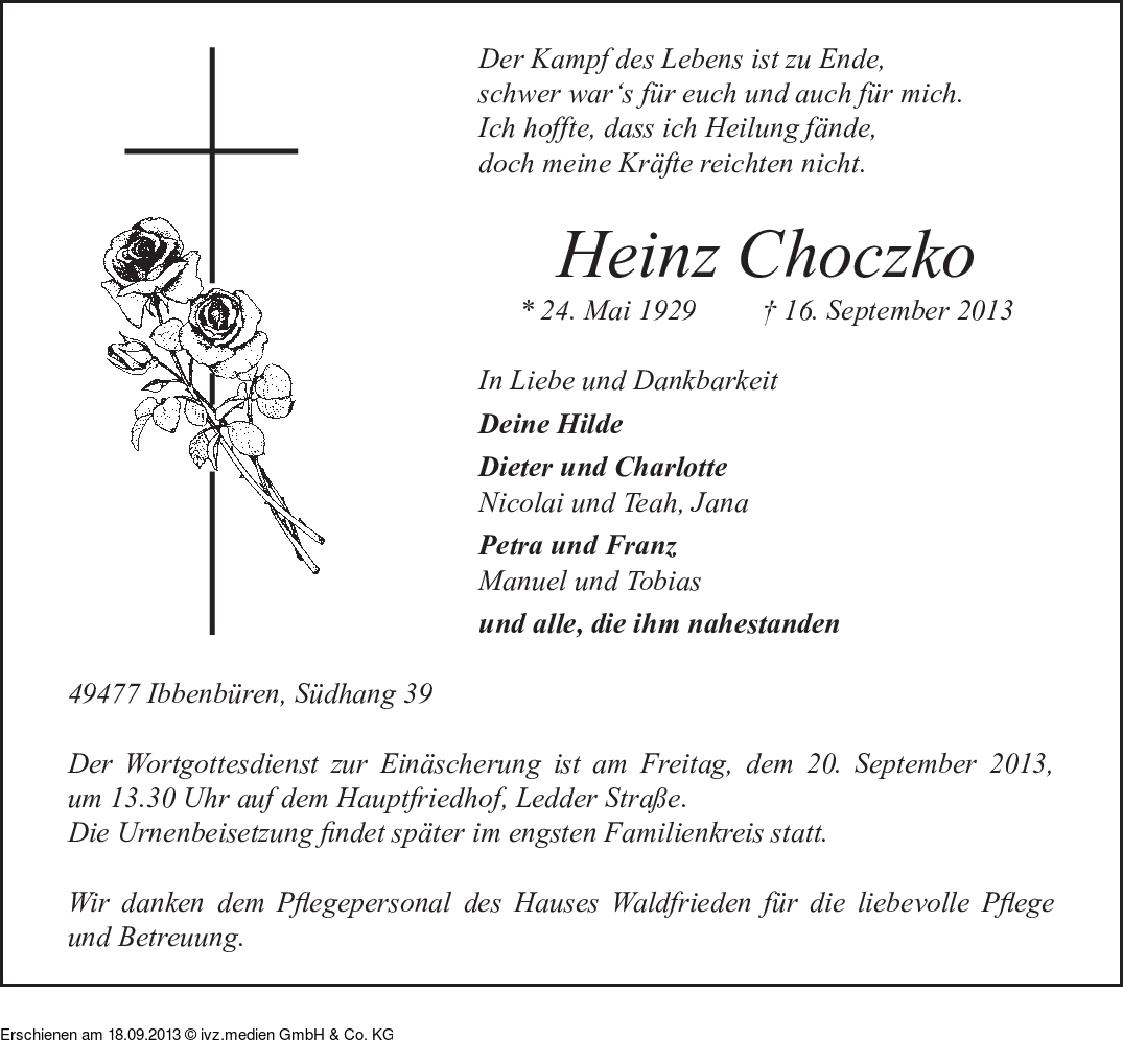 IVZ-Trauer | Heinz Choczko