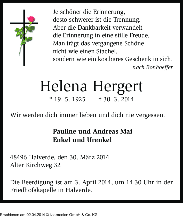 Anzeige vom 02.04.2014