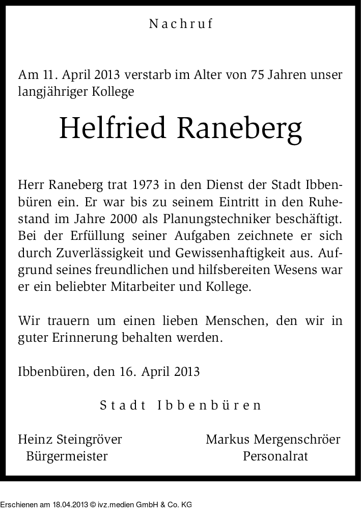 IVZ-Trauer | Helfried Raneberg