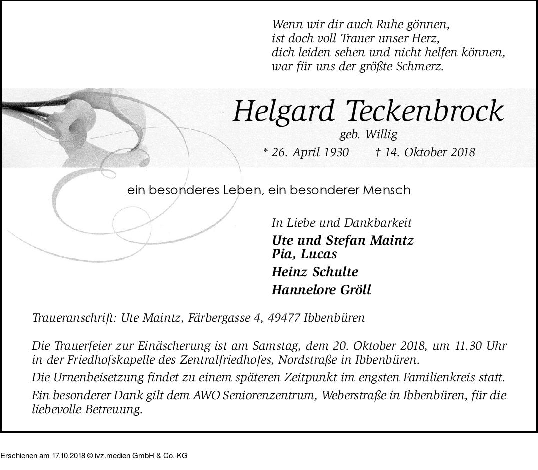 IVZ-Trauer | Helgard Teckenbrock