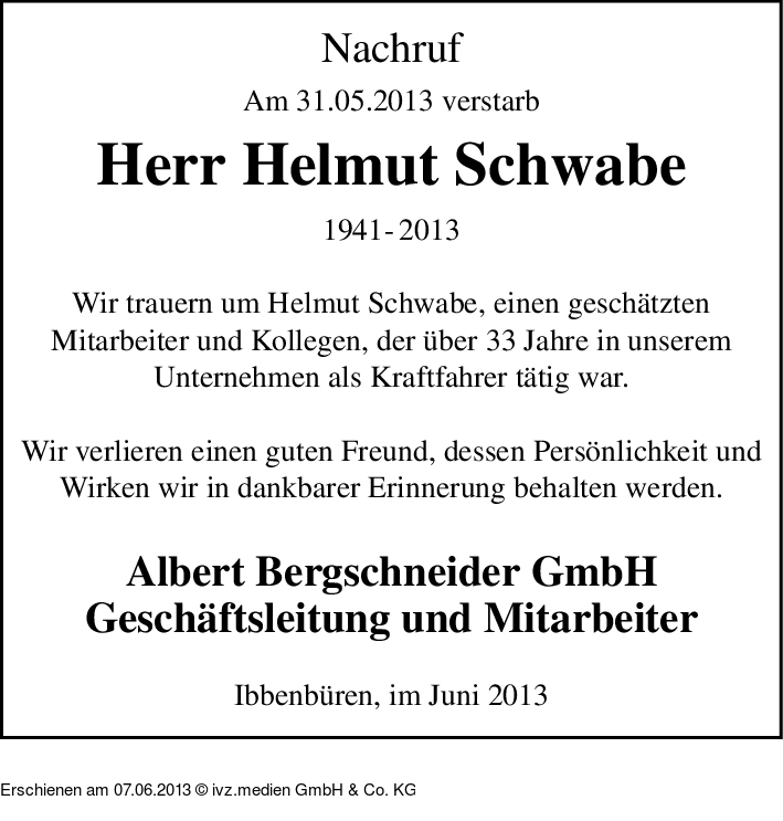 Anzeige vom 07.06.2013
