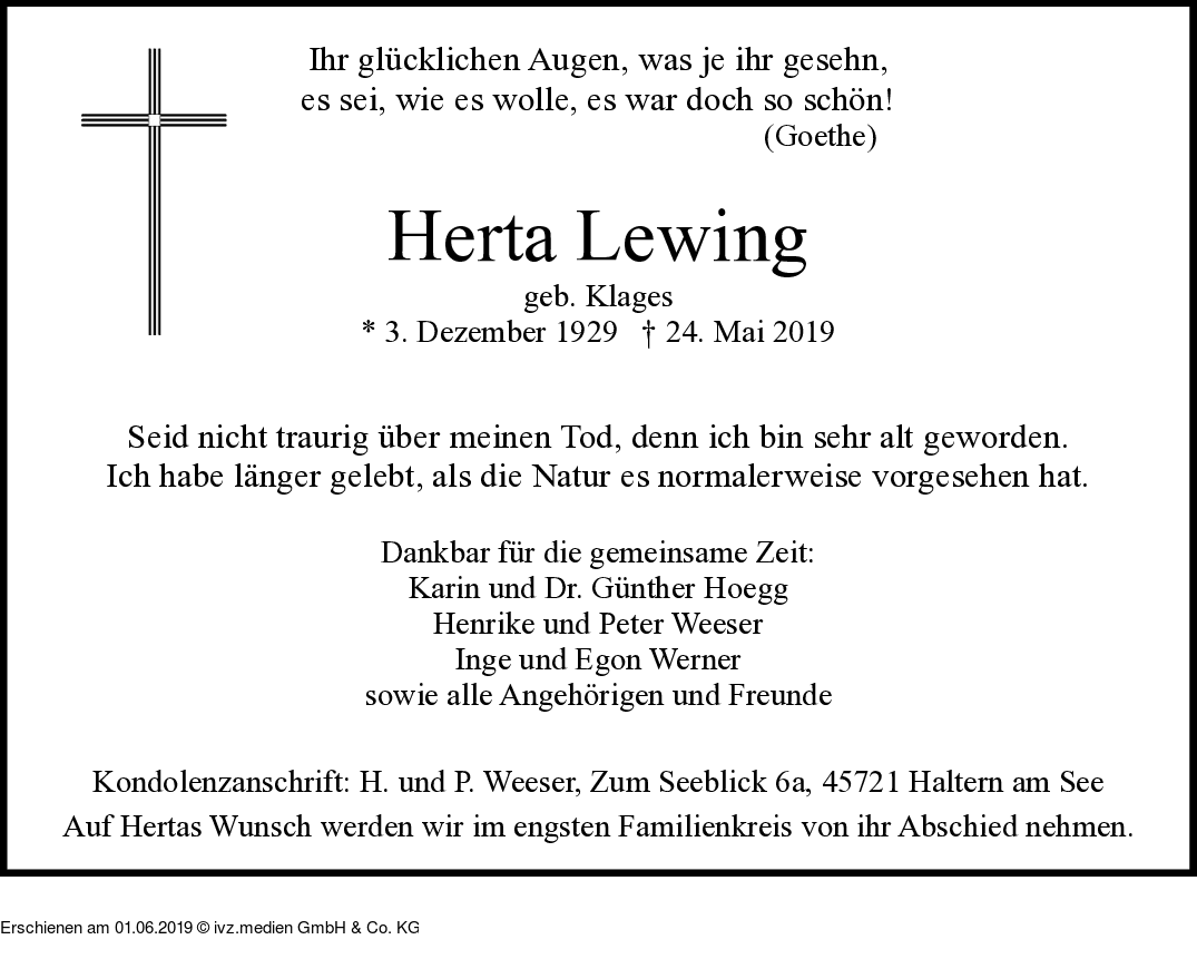 IVZ-Trauer | Herta Lewing
