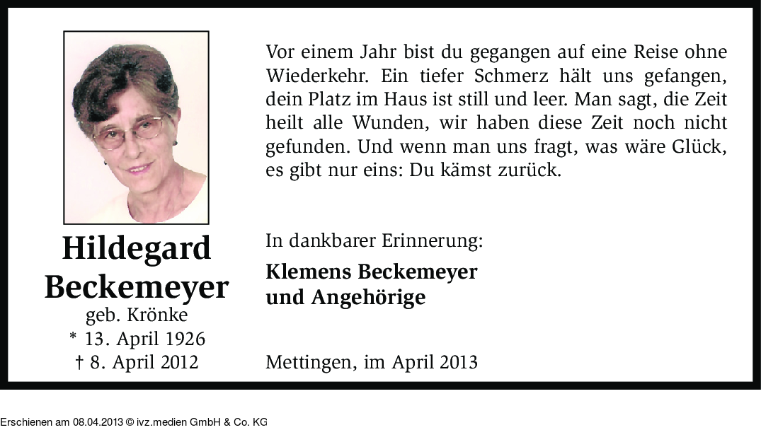 Anzeige vom 08.04.2013