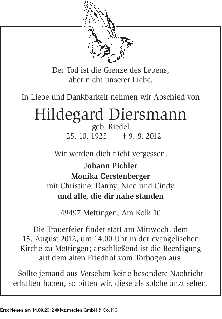 IVZ-Trauer | Hildegard Diersmann