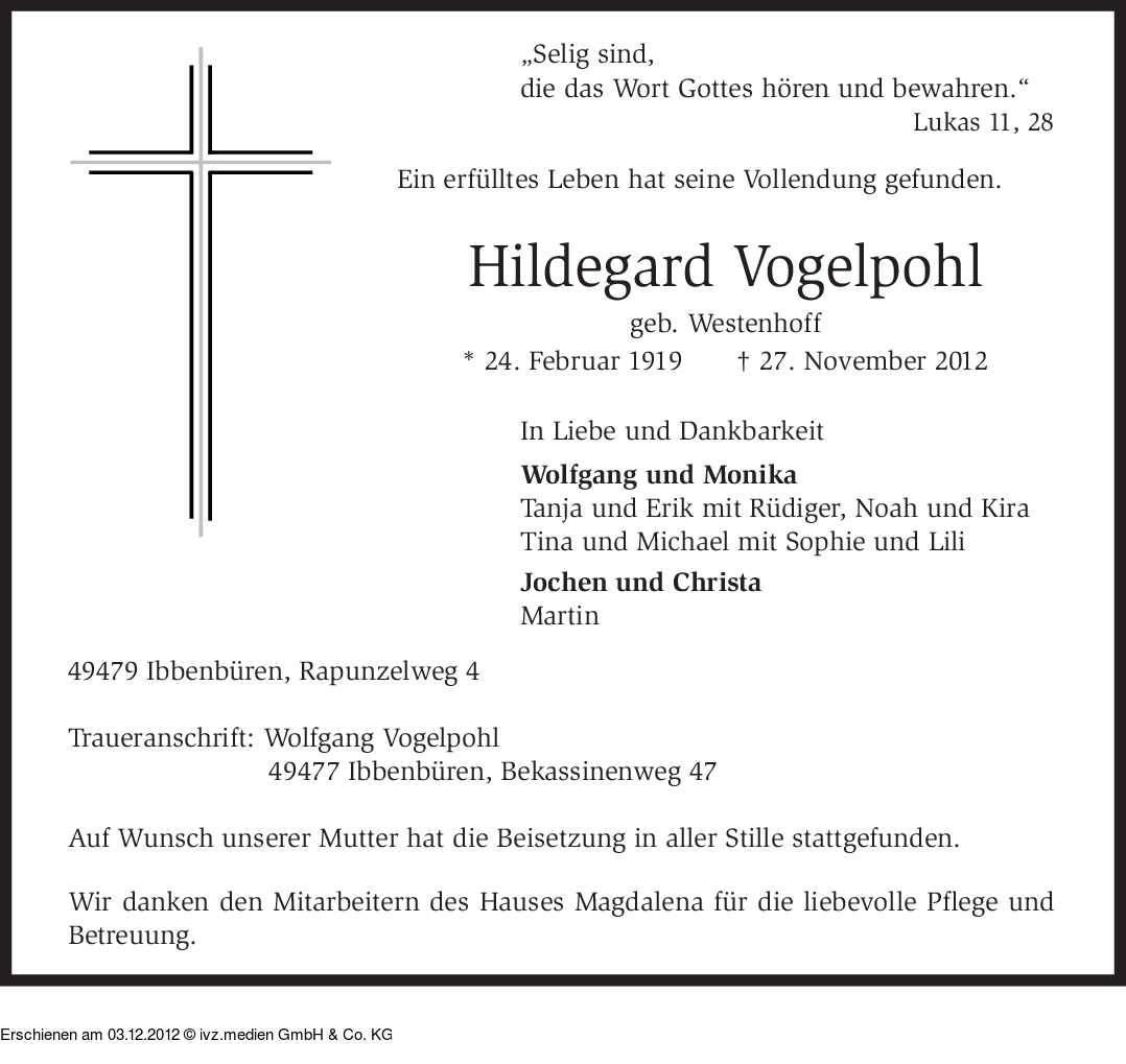 IVZ-Trauer | Hildegard Vogelpohl