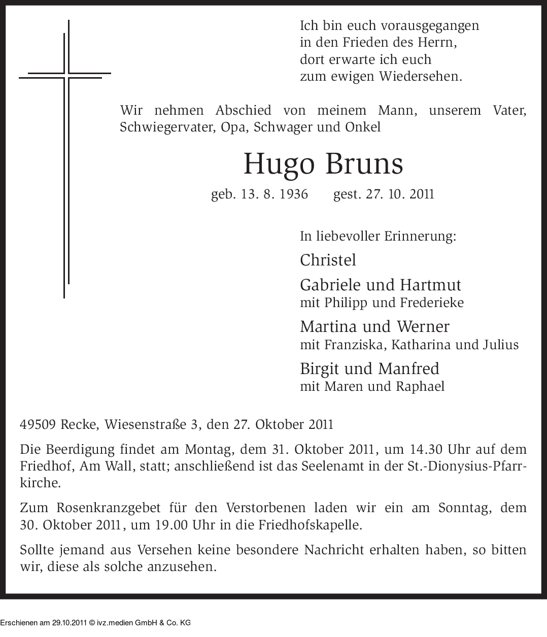 Anzeige vom 29.10.2011