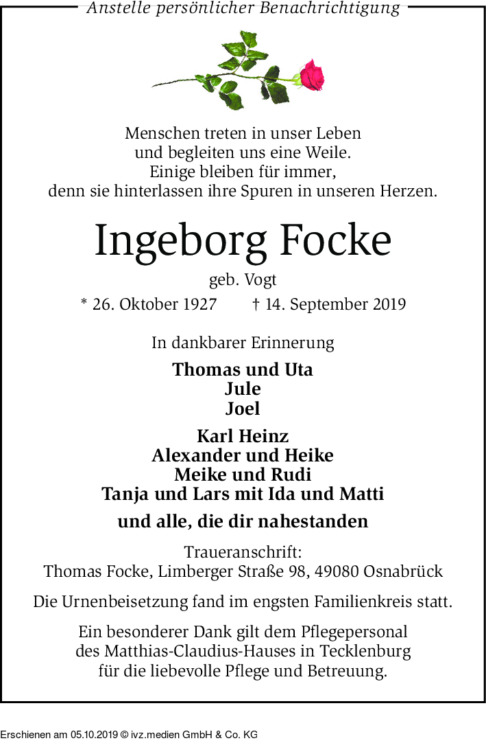 IVZ-Trauer | Ingeborg Focke