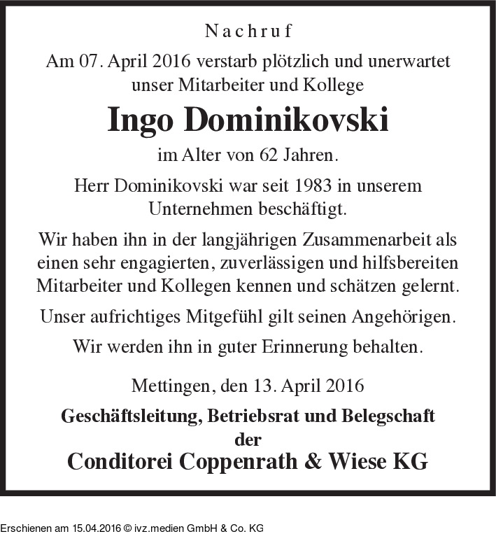 Anzeige vom 15.04.2016