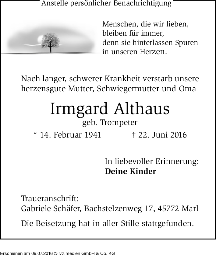 IVZ-Trauer | Irmgard Althaus