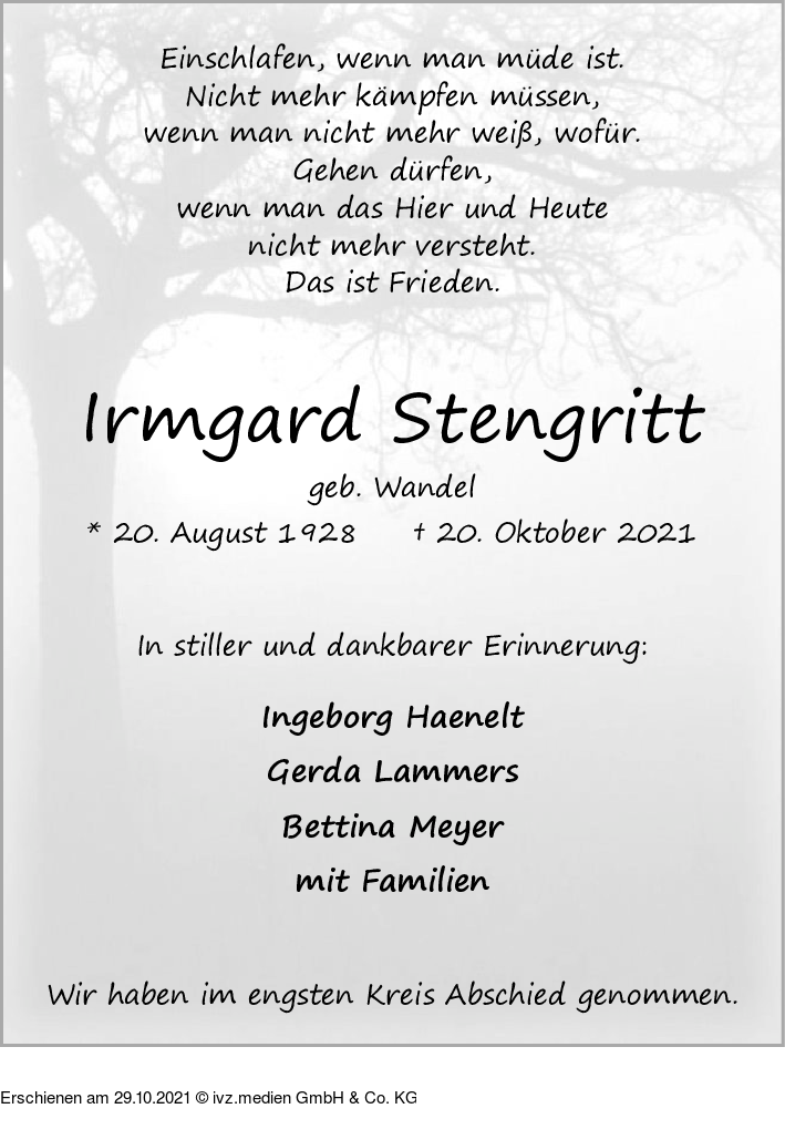 IVZ-Trauer | Irmgard Stengritt