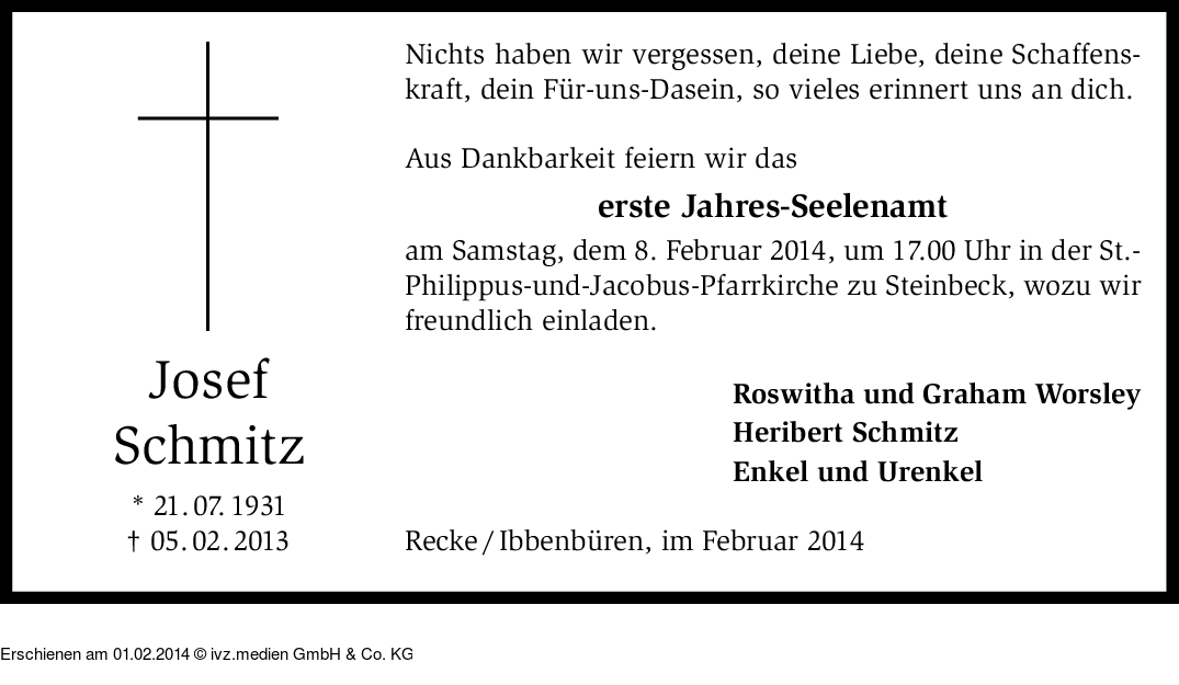 Anzeige vom 01.02.2014