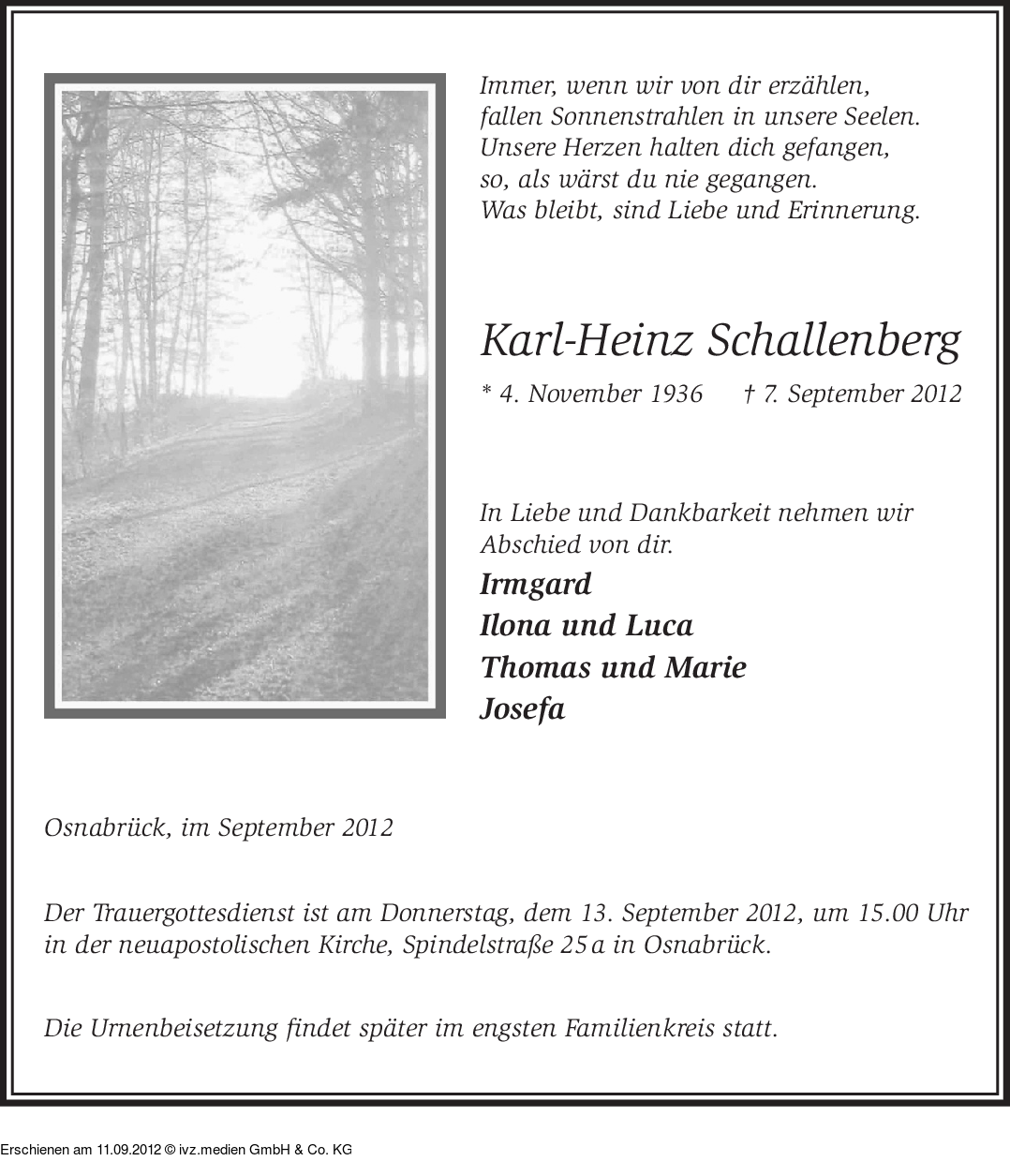 IVZ-Trauer | Karl-Heinz Schallenberg