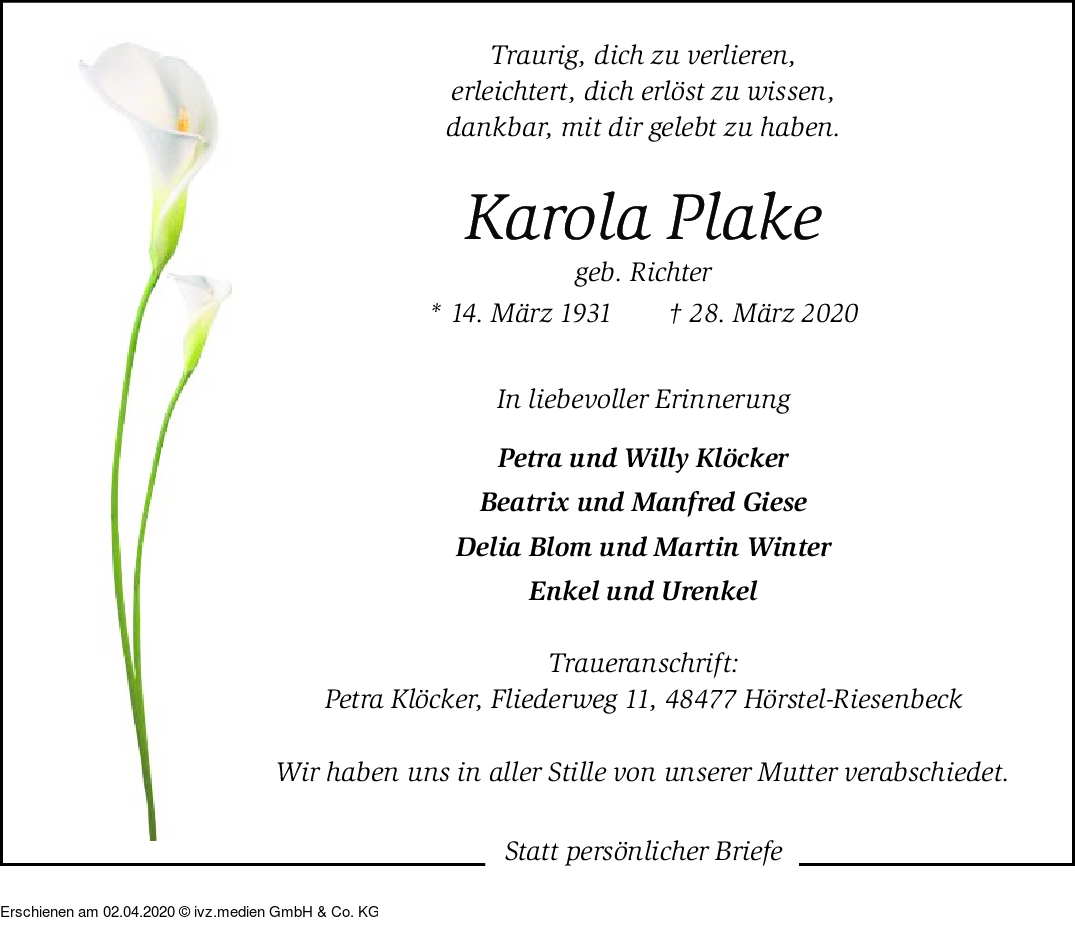 IVZ-Trauer | Karola Plake